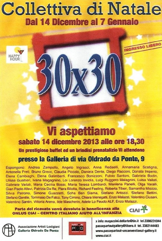 Dal 14 Dicembre al 7 Gennaio 2014 COLLETTIVA D’ARTE DI NATALE “30×30” Galleria Oldrado da Ponte, Lodi