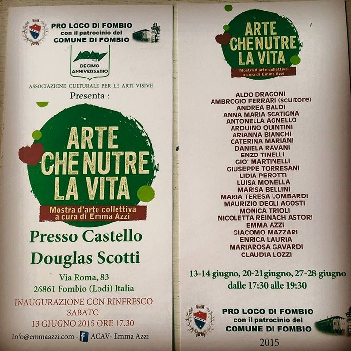 Dal 13 al 28 Giugno 2015 Mostra “Arte che nutre la vita” presso le Sale del Castello Douglas Scotti, Fombio (Lo)
