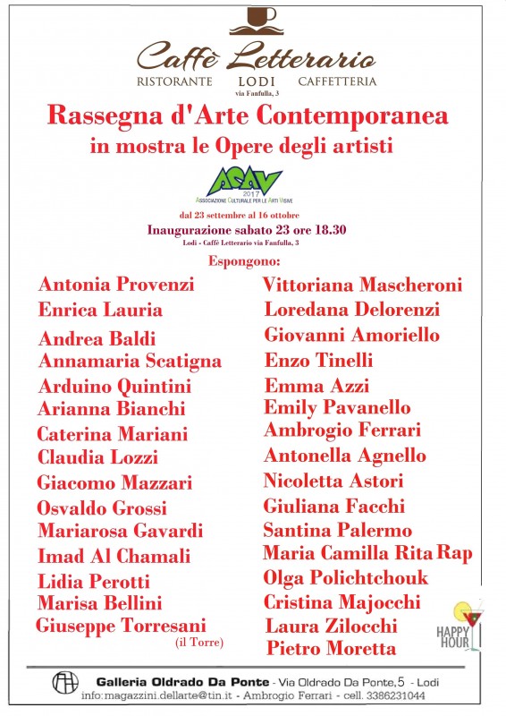 Dal 23 Settembre al 16 Ottobre Mostra d’Arte presso Caffè Letterario, Lodi